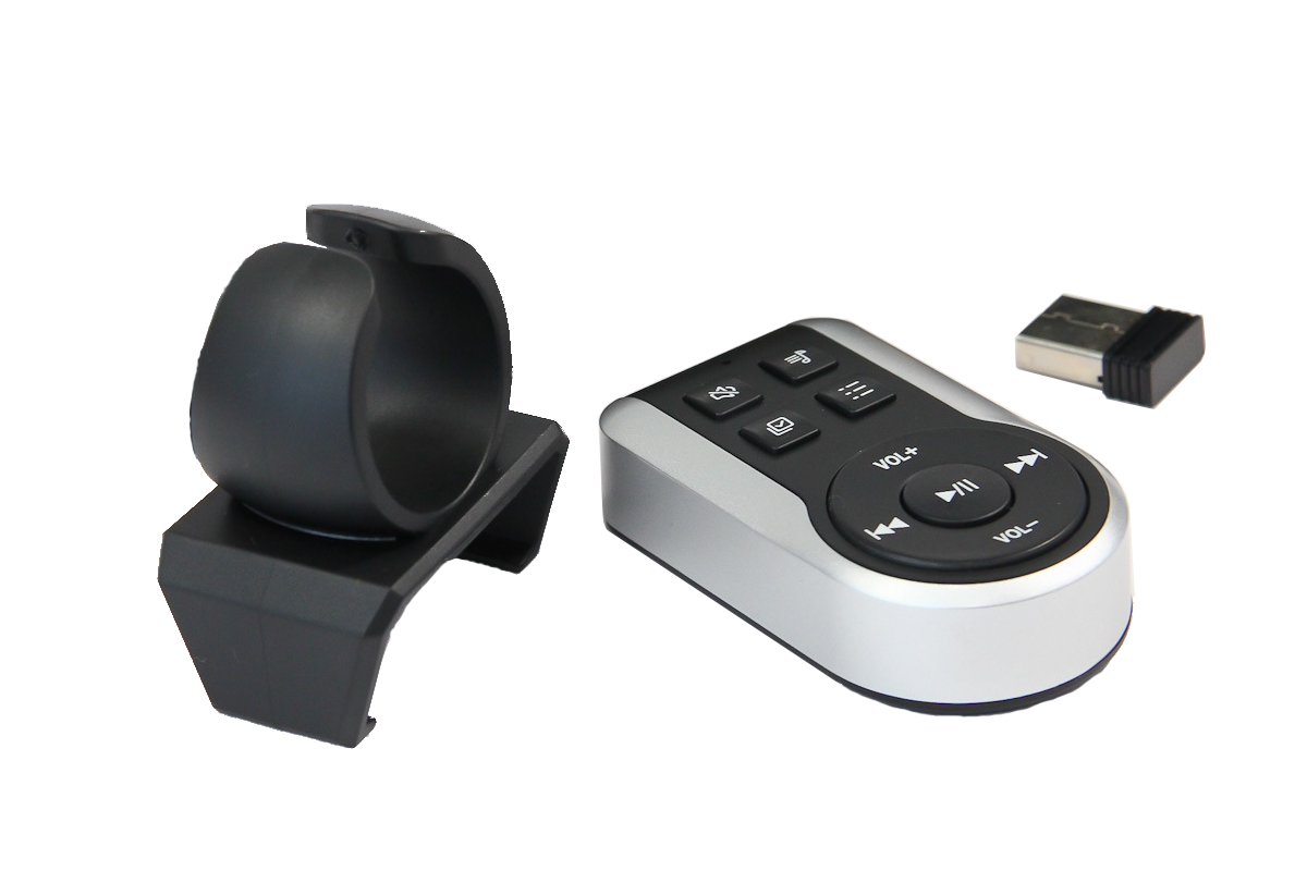 Беспроводной «нарульный» пульт. Идёт в комплекте с плеером. Управляет по радиоканалу, так что прямая видимость не требуется. В свободный USB-разъём (напомню, у P1 их два, у P2 Pro – три) вставляется адаптер, через него пульт и связывается с процессором.