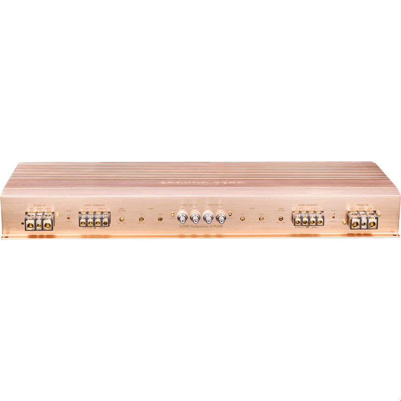 GZPA Reference 4PURE — Автомобильный 4-канальный усилитель мощности класса A/B. High End Pure SQ; 4-канальный усилитель High End Pure SQ ; 4x 150/270/425 Вт при 4/2/1 Ом ; Мостовой режим 2x 1000 Вт макс. при 2 Ом; Симметричный двойной 2-канальный дизайн