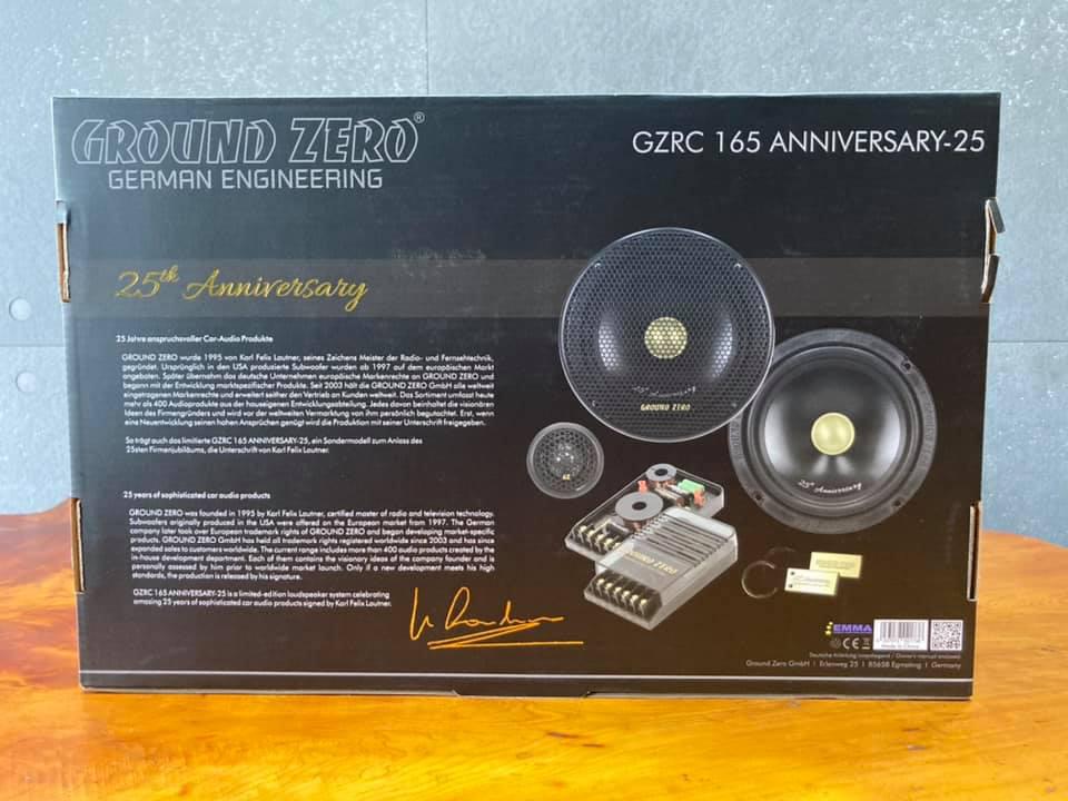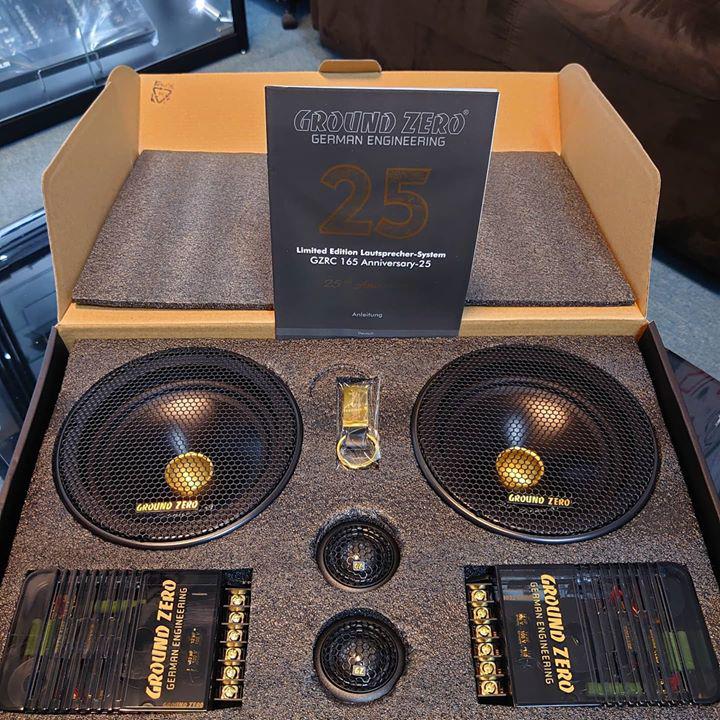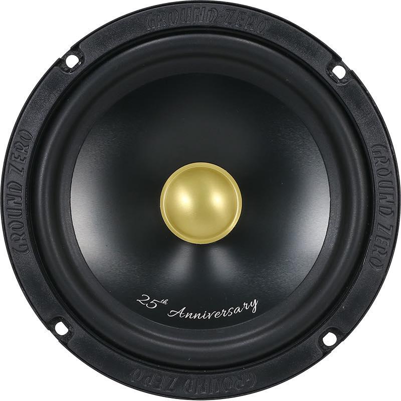 К четвертьвековому юбилею компании GROUND ZERO выпущена лимитированная серия двухполосной компонентной акустики GZRC 165 ANNIVERSARY-25. Это юбилейная версия модели GZRC 165.2SQ из серии Radioactive, популярной у поклонников качественного звука. Отличается она от базовой «золотым» дизайном компонентов, 28-мм твитером (у базовой версии 25 мм), кроссоверами на заказных конденсаторах Mundorf.