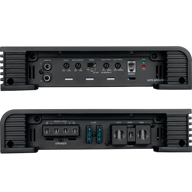 Ground Zero GZTA 2255X-B - автомобильный усилитель 2 канальный. 2x150 Вт (RMS) 4 Ом, 2x250 Вт (RMS) 2 Ом, 1x500 Вт (RMS) 4 Ом.