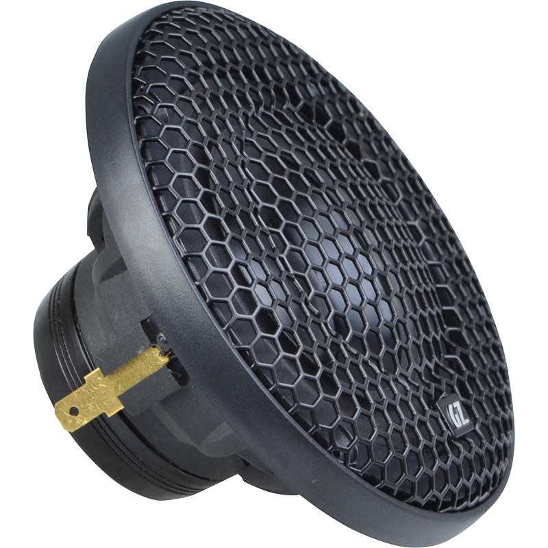 Конструктивные особенности. Диффузор и центральный колпачок – алюминиевые. Верхний подвес – с обращённым профилем, что позволяет ставить динамики в том числе и в «неудобные» штатные места, в которых защитные сетки получаются близко к диффузорам. Корзина выполнена из конструкционного пластика со стекловолоконным наполнением. В коробке динамики идут с двумя вариантами сеток. Первые – вставляются в кольцевой паз по периметру, а сами динамики в этом случае можно закрепить в своих посадочных местах с помощью скоб. Вторые – чуть больше (9 см по внешнему диаметру), и ими динамик можно прижать сверху.