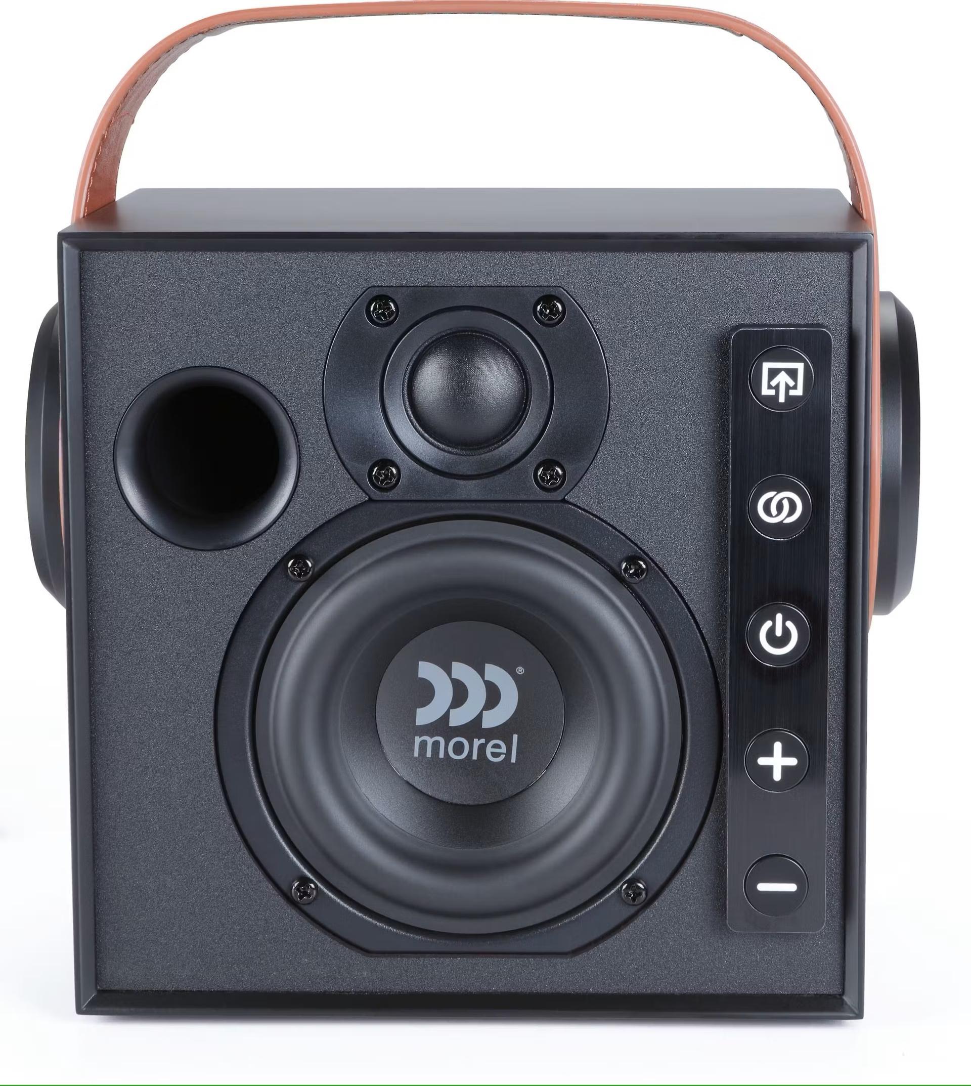В основе портативной акустической системы BIGGIE лежат прецизионные динамики ручной сборки. Эта 2-полосная акустическая система с фазоинвертором включает в себя изготовленный на заказ низкочастотный динамик диаметром 100 мм (4 дюйма) с большой амплитудой, что обеспечивает точное и глубокое воспроизведение низких частот. Дополненная знаменитым 25-миллиметровым (1-дюймовым) мягкокупольным твитером Morel, она воспроизводит высокие частоты с исключительной ясностью и детальностью без резкости и искажений, обеспечивая хорошо тонально сбалансированную точность во всем частотном спектре, что позволяет получить действительно захватывающее впечатление от прослушивания. Небольшой квадратный динамик, способный воспроизводить звук Hi-Fi.