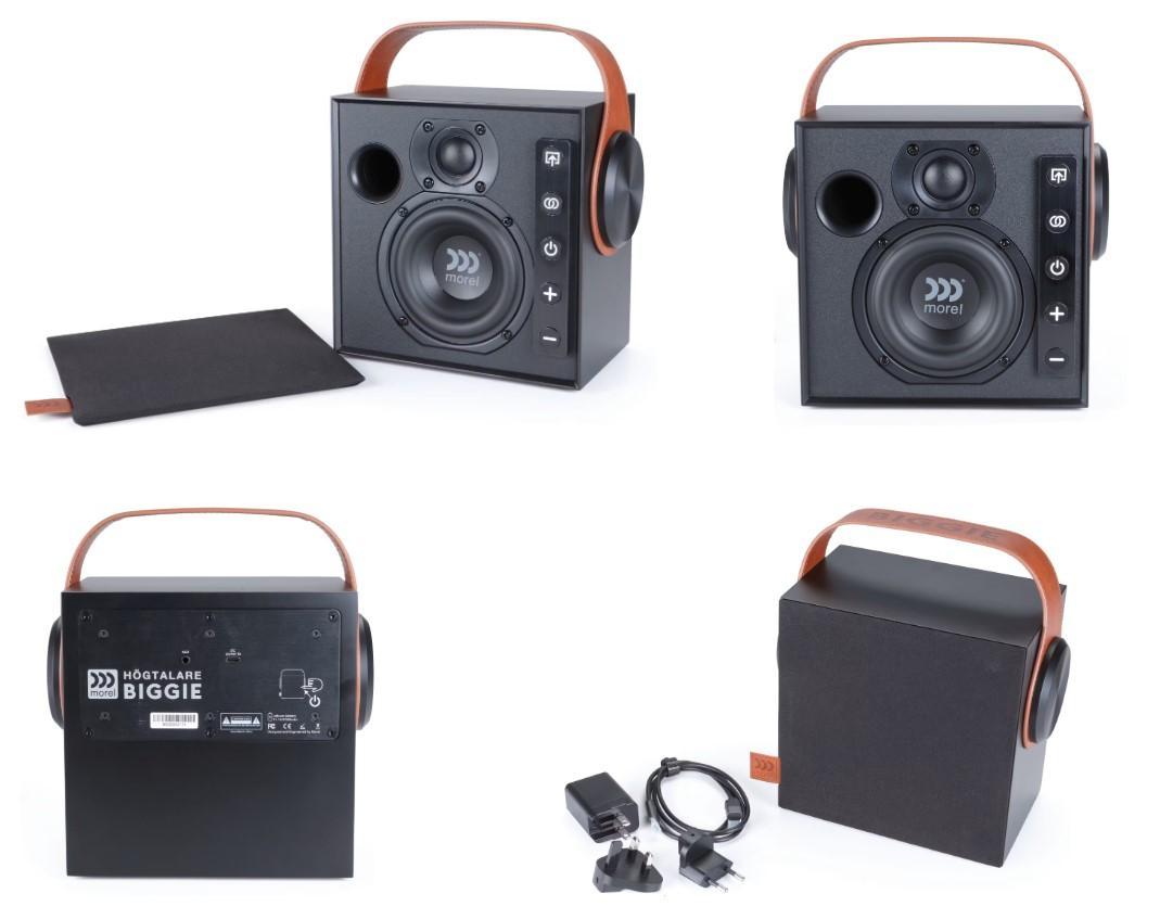 В основе портативной акустической системы BIGGIE лежат прецизионные динамики ручной сборки. Эта 2-полосная акустическая система с фазоинвертором включает в себя изготовленный на заказ низкочастотный динамик диаметром 100 мм (4 дюйма) с большой амплитудой, что обеспечивает точное и глубокое воспроизведение низких частот. Дополненная знаменитым 25-миллиметровым (1-дюймовым) мягкокупольным твитером Morel, она воспроизводит высокие частоты с исключительной ясностью и детальностью без резкости и искажений, обеспечивая хорошо тонально сбалансированную точность во всем частотном спектре, что позволяет получить действительно захватывающее впечатление от прослушивания. Небольшой квадратный динамик, способный воспроизводить звук Hi-Fi.