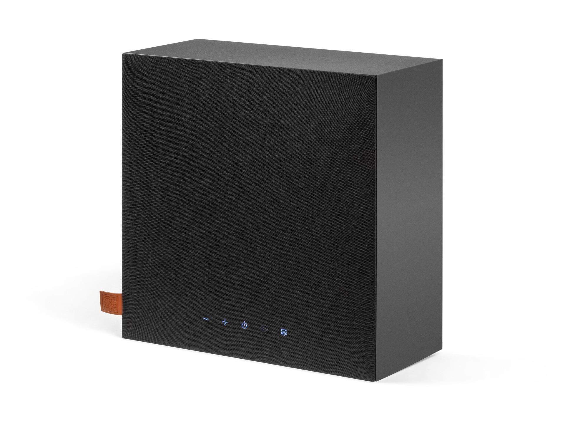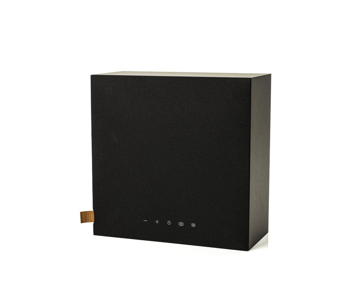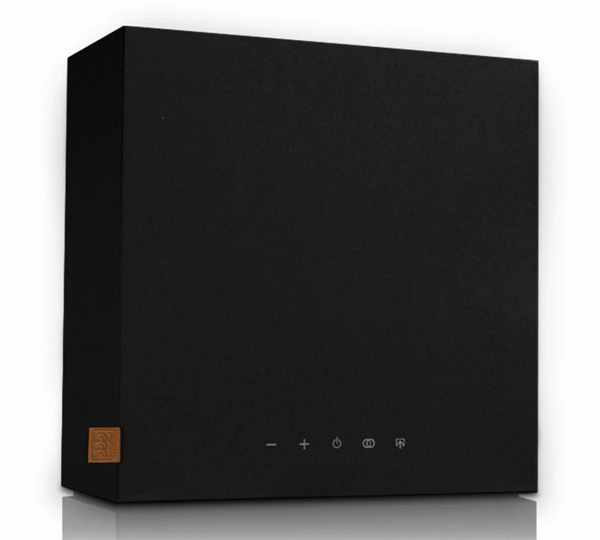 Активная беспроводная колонка в конфигурации 2.1. Плоский корпус для удобного размещения: СЧ-динамик диаметром 6 дюймов с двойным магнитом и два 1-дюймовых твитера с мягким куполом, фазоинвертор на передней панели. Раздельные усилители мощностью по 50 Вт, DSP-обработка сигнала. Bluetooth с поддержкой aptX, вход на разъеме mini-jack. USB-разъем для питания внешних устройств. Габариты (ШхВхГ): 330x330x150 мм.