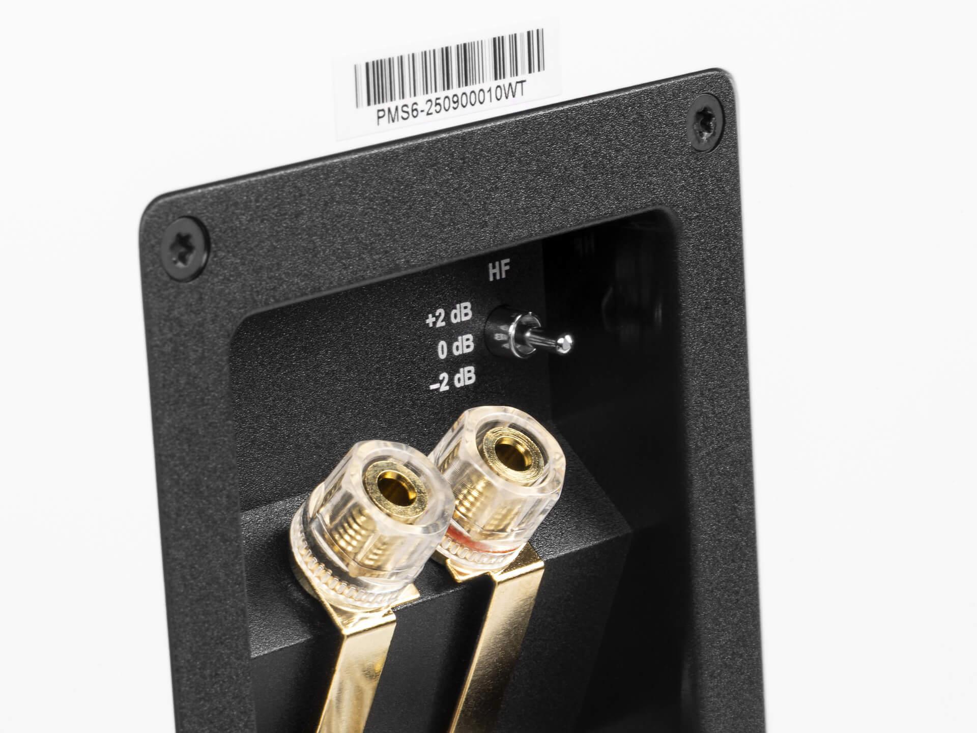 Корпус акустических систем изготовлен из панелей HDF и отделан лаком. Динамики защищены тканевой решеткой в цвет корпуса на магнитных креплениях. На задней панели расположены порт фазоинвертора и две пары винтовых клемм для подключения усилителя как и обычном, так и в би-вайринговом (bi-wiring) вариантах. Акустические системы MS-6 предлагаются в двух цветах отделки – черном и белом.