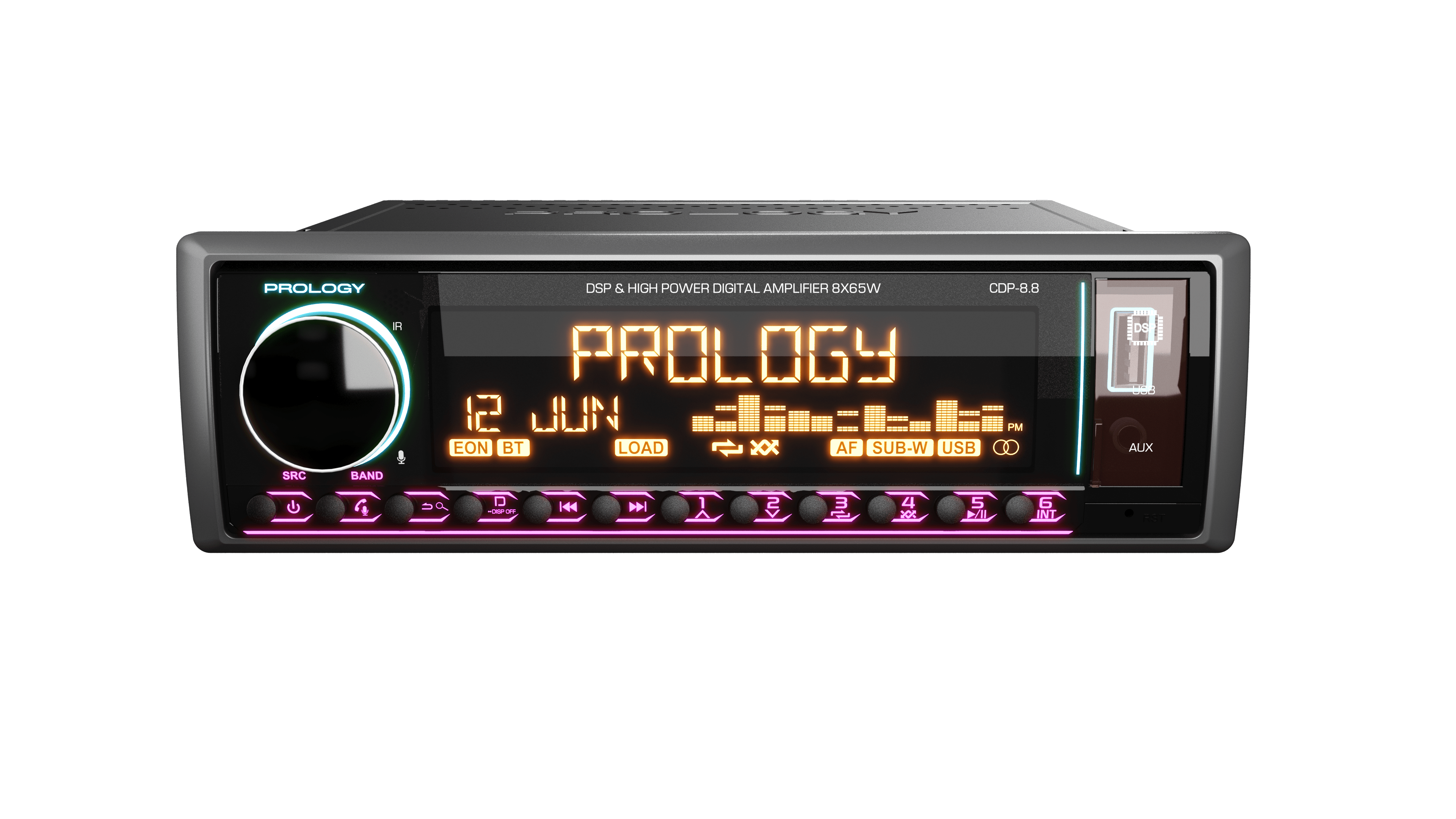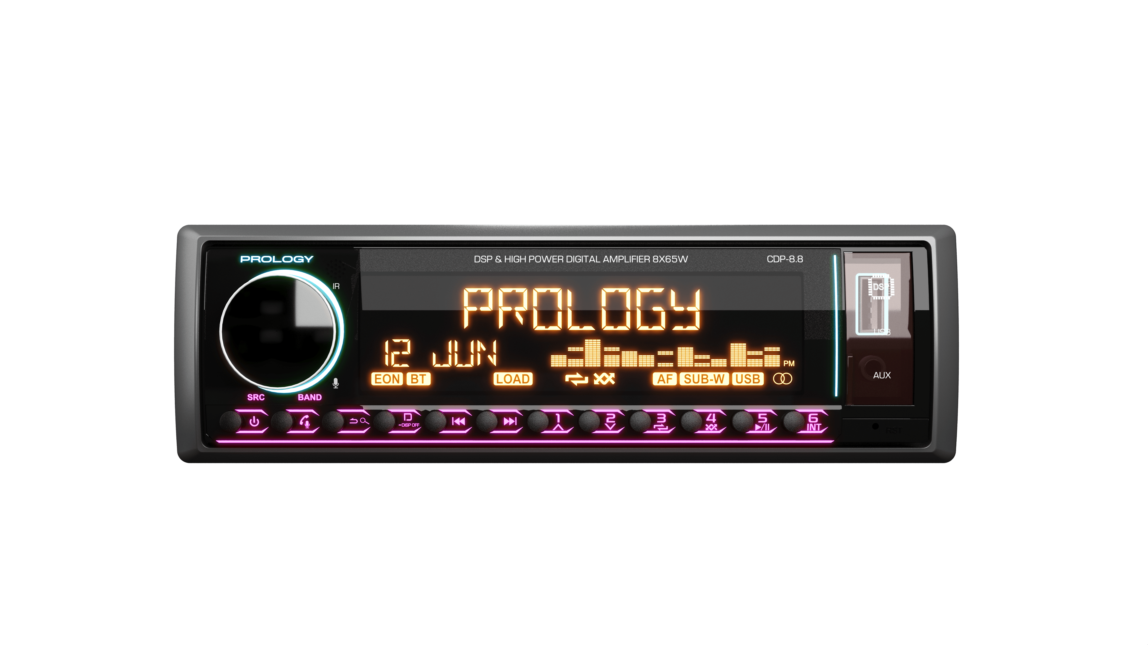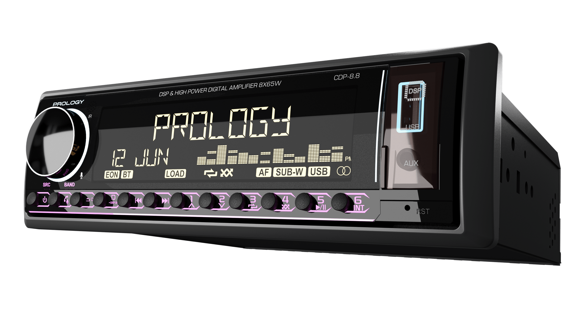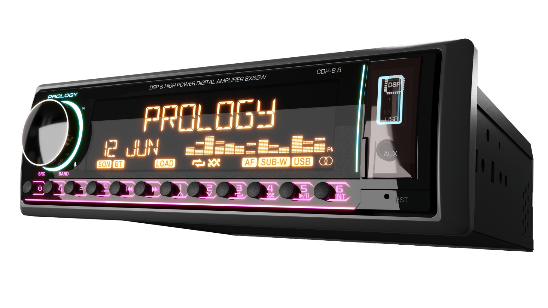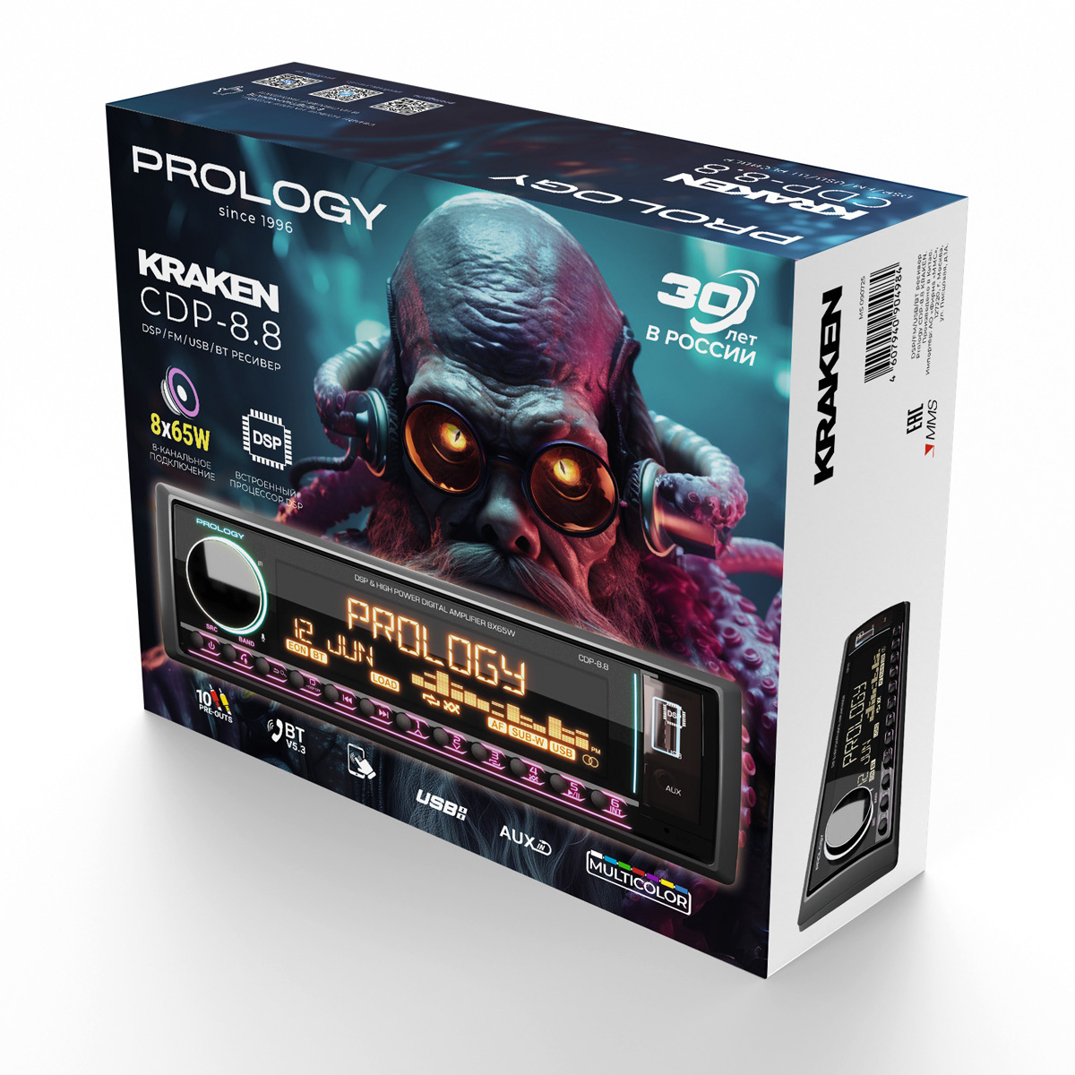 PROLOGY CDP-8.8 KRAKEN — первое головное устройство, объединившее современный DSP-процессор и встроенный 8-канальный усилитель D-класса высокой мощности (65 Вт на канал). Десять линейных выходов, 5 пар RCA для подключения внешних усилителей позволяют создавать аудиосистемы любой сложности.