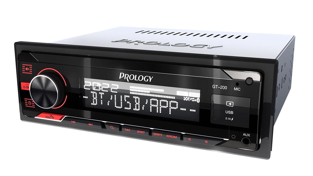 PROLOGY GT-200 — FM SD/USB ресивер с поддержкой беспроводной технологии Bluetooth — это недорогая современная и широкофункциональная автомагнитола стандартного установочного размера 1DIN с минимальной монтажной глубиной в 85 мм.