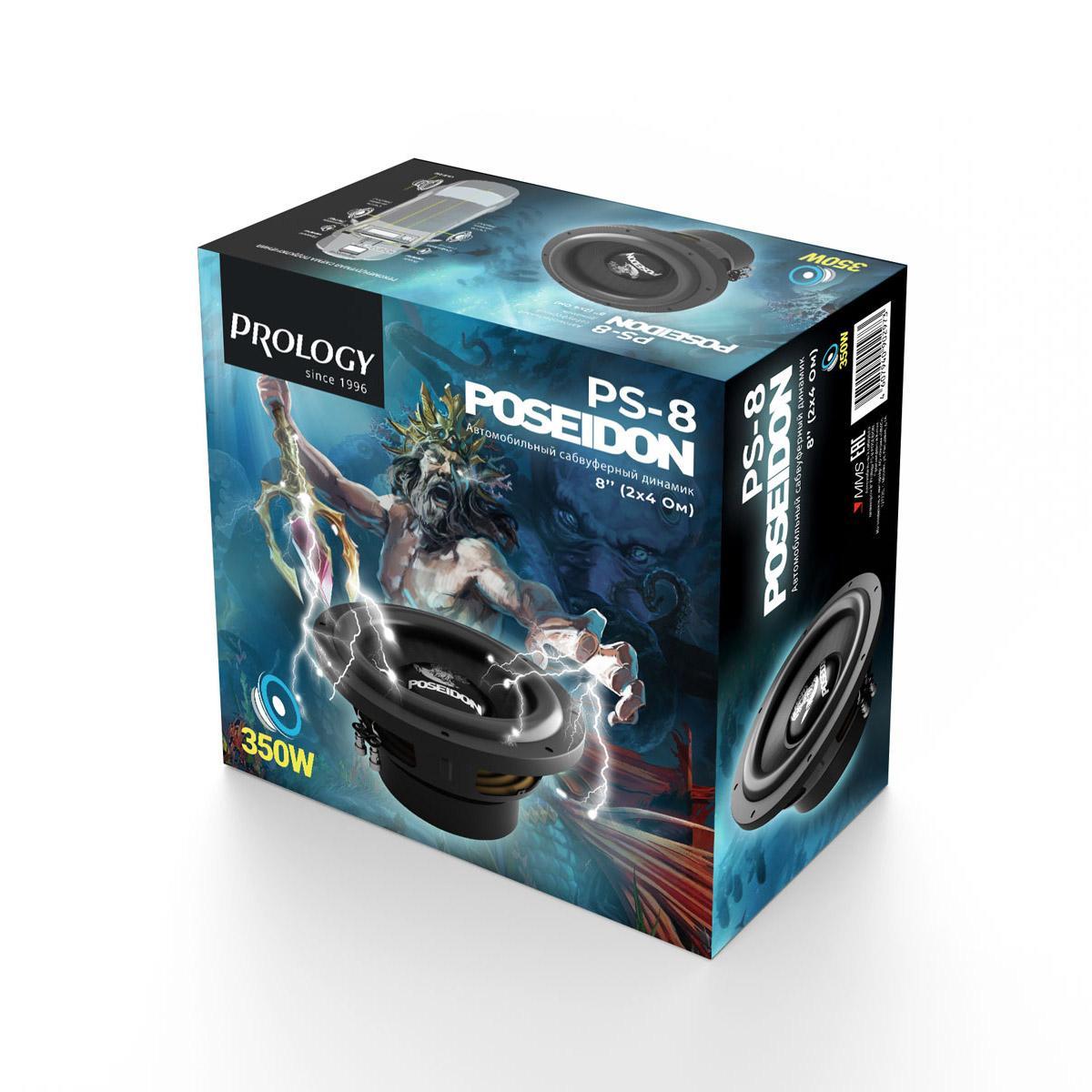 PROLOGY PS-8 POSEIDON — автомобильный сабвуферный динамик 200 мм (8") с двойной звуковой катушкой, мощность 150 Вт (RMS), 2х4 Ом.