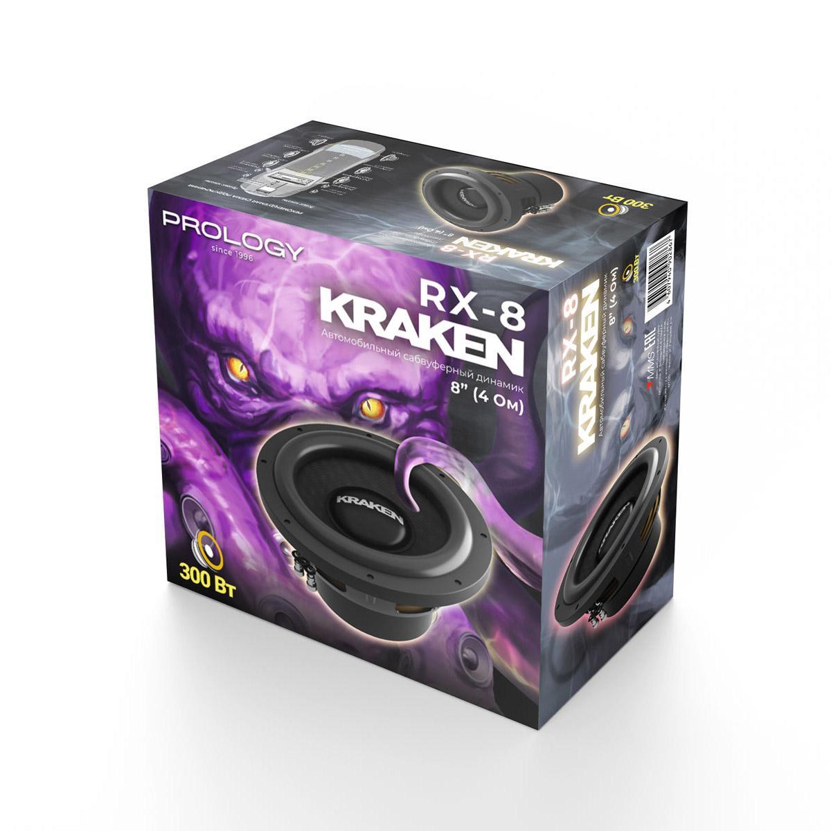 PROLOGY RX-8 KRAKEN — автомобильный сабвуферный динамик 200 мм (8"), мощность 120 Вт (RMS), 4 Ом.